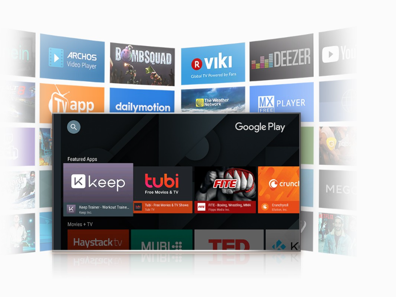Netflix, YouTube et d'autres applications sont disponibles sur le TCL Android TV. Toutes les applications de films, spectacles, musique, sports et vidéos sont prêtes à être téléchargées depuis Google Play Store. Android TV prend également en charge les applications Cast Ready sur g.co/castapps.